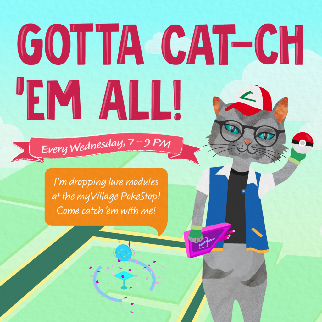 We’ll be dropping lures at myVillage, and some of the nearby Pok’Stops in the area, to maximise your catch rate of Pok’mon!